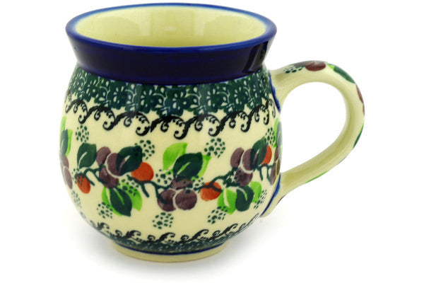 This Berry Garland 12oz Bubble Mug was handmade and hand decorated in Boleslawiec, Poland by skilled artisans according to old traditional methods. This Polish stoneware is microwave, dishwasher, freezer, and oven safe up to 480°F. It does not contain lead or cadmium. It is part of the Berry Garland Collection.