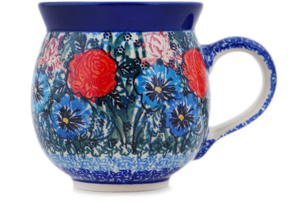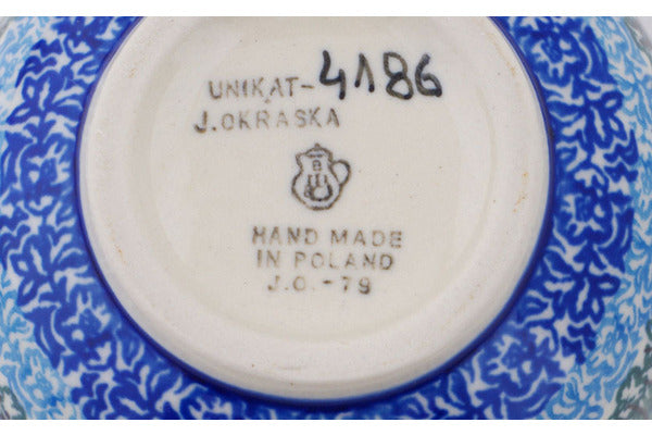 This Floral Oasis 12oz Bubble Mug was handmade and hand decorated in Boleslawiec, Poland by skilled artisans according to old traditional methods. This is a Polish pottery Signature Unikat, which means that it has been hand painted with both sponges and brushes and it is signed by the artist who painted it. Unikat pieces are the most intricate works of art. Larger Unikat items take hours of very careful work to finish. This Polish stoneware is microwave, dishwasher, freezer, and oven safe up to 480°F. It does not contain lead or cadmium. It is part of the Floral Oasis Collection.
