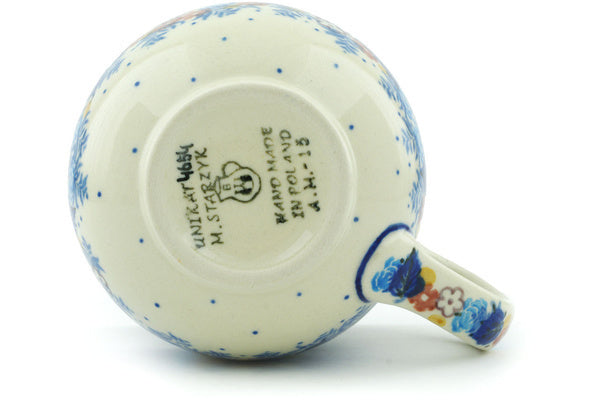 This Flower Wreath 12oz Bubble Mug was handmade and hand decorated in Boleslawiec, Poland by skilled artisans according to old traditional methods. This is a Polish pottery Signature Unikat, which means that it has been hand painted with both sponges and brushes and it is signed by the artist who painted it. Unikat pieces are the most intricate works of art. Larger Unikat items take hours of very careful work to finish. This Polish stoneware is microwave, dishwasher, freezer, and oven safe up to 480°F. It does not contain lead or cadmium. It is part of the Flower Wreath Collection.