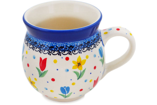 This Full Bloom 12oz Bubble Mug was handmade and hand decorated in Boleslawiec, Poland by skilled artisans according to old traditional methods. This is a Polish pottery Signature Unikat, which means that it has been hand painted with both sponges and brushes and it is signed by the artist who painted it. Unikat pieces are the most intricate works of art. Larger Unikat items take hours of very careful work to finish. This Polish stoneware is microwave, dishwasher, freezer, and oven safe up to 480°F. It does not contain lead or cadmium. It is part of the Full Bloom Collection.