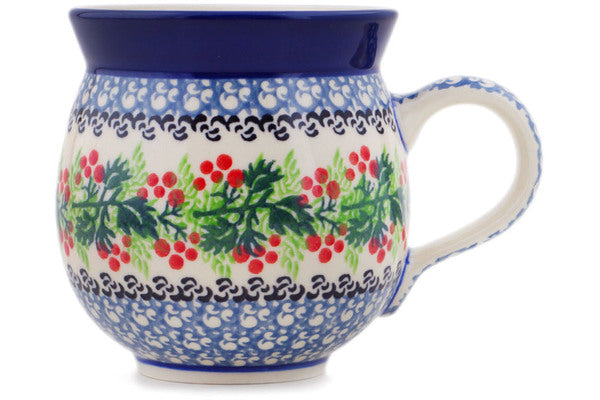 This Holly Berry Wreath 12oz Bubble Mug was handmade and hand decorated in Boleslawiec, Poland by skilled artisans according to old traditional methods. This Polish stoneware is microwave, dishwasher, freezer, and oven safe up to 480°F. It does not contain lead or cadmium. It is part of the Holly Berry Wreath Collection.