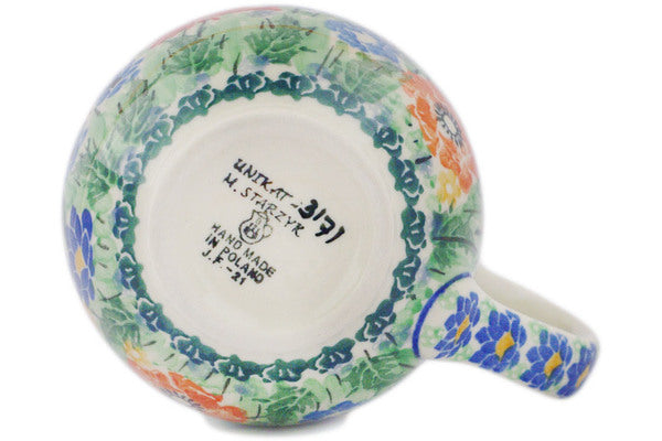 This Loropetalum Garden 12oz Bubble Mug was handmade and hand decorated in Boleslawiec, Poland by skilled artisans according to old traditional methods. This is a Polish pottery Signature Unikat, which means that it has been hand painted with both sponges and brushes and it is signed by the artist who painted it. Unikat pieces are the most intricate works of art. Larger Unikat items take hours of very careful work to finish. This Polish stoneware is microwave, dishwasher, freezer, and oven safe up to 480°F. It does not contain lead or cadmium. It is part of the Loropetalum Garden Collection.