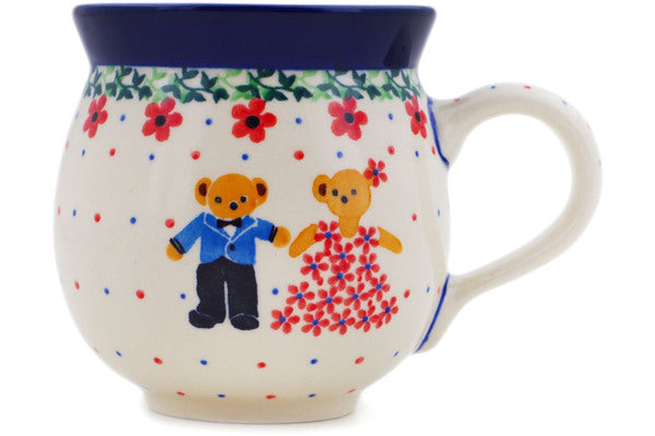 This Royal Teddy 12oz Bubble Mug was handmade and hand decorated in Boleslawiec, Poland by skilled artisans according to old traditional methods. This is a Polish pottery Signature Unikat, which means that it has been hand painted with both sponges and brushes and it is signed by the artist who painted it. Unikat pieces are the most intricate works of art. Larger Unikat items take hours of very careful work to finish. This Polish stoneware is microwave, dishwasher, freezer, and oven safe up to 480°F. It does not contain lead or cadmium. It is part of the Royal Teddy Collection.