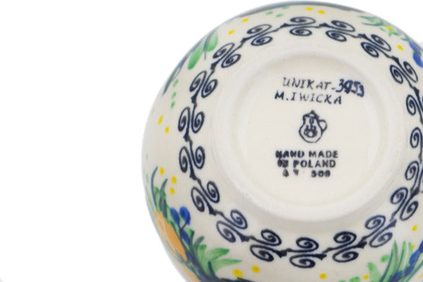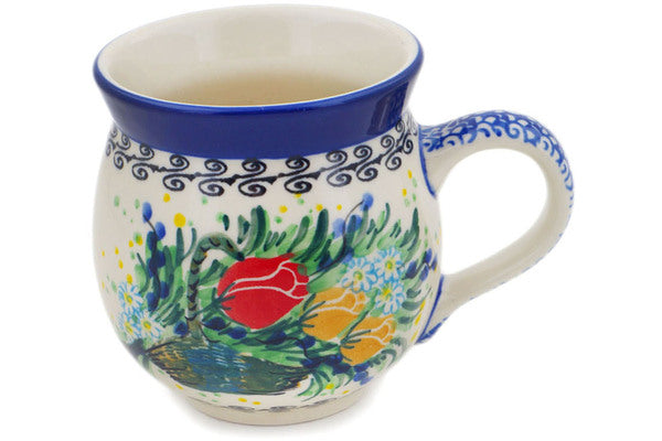 This Swaying Tulips 12oz Bubble Mug was handmade and hand decorated in Boleslawiec, Poland by skilled artisans according to old traditional methods. This is a Polish pottery Signature Unikat, which means that it has been hand painted with both sponges and brushes and it is signed by the artist who painted it. Unikat pieces are the most intricate works of art. Larger Unikat items take hours of very careful work to finish. This Polish stoneware is microwave, dishwasher, freezer, and oven safe up to 480°F. It does not contain lead or cadmium. It is part of the Swaying Tulips Collection.