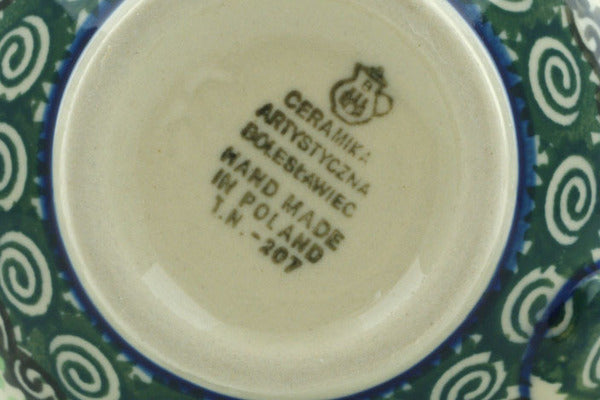 This Swirling Emeralds 12oz Bubble Mug was handmade and hand decorated in Boleslawiec, Poland by skilled artisans according to old traditional methods. This Polish stoneware is microwave, dishwasher, freezer, and oven safe up to 480°F. It does not contain lead or cadmium. It is part of the Swirling Emeralds Collection.