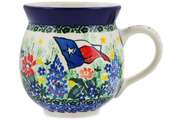 This Texas Flag 12oz Bubble Mug was handmade and hand decorated in Boleslawiec, Poland by skilled artisans according to old traditional methods. This is a Polish pottery Signature Unikat, which means that it has been hand painted with both sponges and brushes and it is signed by the artist who painted it. Unikat pieces are the most intricate works of art. Larger Unikat items take hours of very careful work to finish. This Polish stoneware is microwave, dishwasher, freezer, and oven safe up to 480°F. It does not contain lead or cadmium. It is part of the Texas Flag Collection.