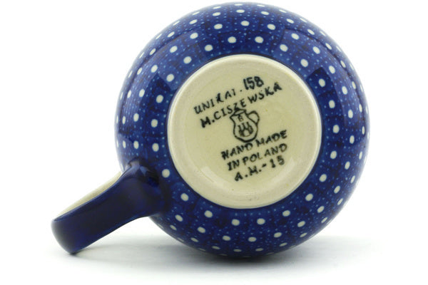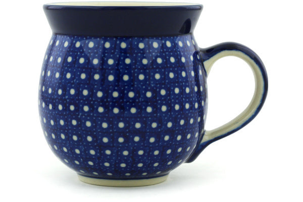 This White Polka Dot 12oz Bubble Mug was handmade and hand decorated in Boleslawiec, Poland by skilled artisans according to old traditional methods. This is a Polish pottery Signature Unikat, which means that it has been hand painted with both sponges and brushes and it is signed by the artist who painted it. Unikat pieces are the most intricate works of art. Larger Unikat items take hours of very careful work to finish. This Polish stoneware is microwave, dishwasher, freezer, and oven safe up to 480°F. It does not contain lead or cadmium. It is part of the White Polka Dot Collection.