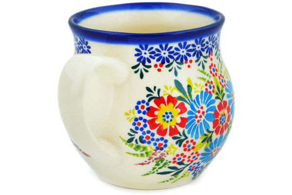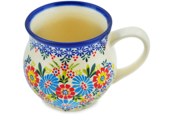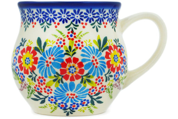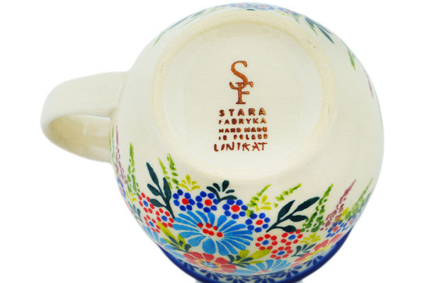 This Bouquet In Bloom 13 oz Bubble Mug was handmade and hand decorated in Boleslawiec, Poland by skilled artisans according to old traditional methods. This is a Polish pottery Signature Unikat, which means that it has been hand painted with both sponges and brushes and it is signed by the artist who painted it. Unikat pieces are the most intricate works of art. Larger Unikat items take hours of very careful work to finish. This Polish stoneware is microwave, dishwasher, freezer, and oven safe up to 480°F. It does not contain lead or cadmium. It is part of the Bouquet In Bloom Collection.