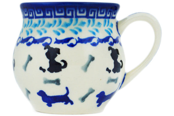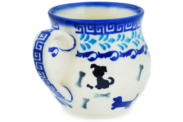 This Puppy Pleasure 8 oz Bubble Mug was handmade and hand decorated in Boleslawiec, Poland by skilled artisans according to old traditional methods. This Polish stoneware is microwave, dishwasher, freezer, and oven safe up to 480°F. It does not contain lead or cadmium. It is part of the Puppy Pleasure Collection.