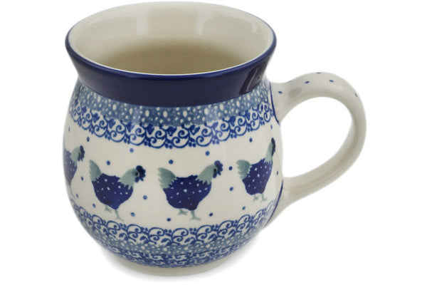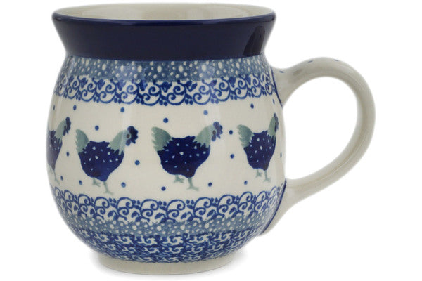 This Blue Chicken 16 oz Bubble Mug was handmade and hand decorated in Boleslawiec, Poland by skilled artisans according to old traditional methods. This Polish stoneware is microwave, dishwasher, freezer, and oven safe up to 480°F. It does not contain lead or cadmium. It is part of the Blue Chicken Collection.