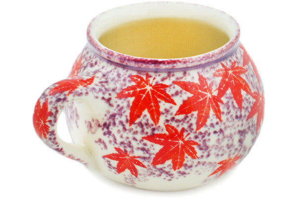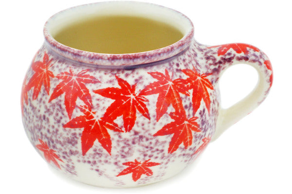 This Brisk Fall 16 oz Bubble Mug was handmade and hand decorated in Boleslawiec, Poland by skilled artisans according to old traditional methods. This is a Polish pottery Signature Unikat, which means that it has been hand painted with both sponges and brushes and it is signed by the artist who painted it. Unikat pieces are the most intricate works of art. Larger Unikat items take hours of very careful work to finish. This Polish stoneware is microwave, dishwasher, freezer, and oven safe up to 480°F. It does not contain lead or cadmium. It is part of the Brisk Fall Collection.