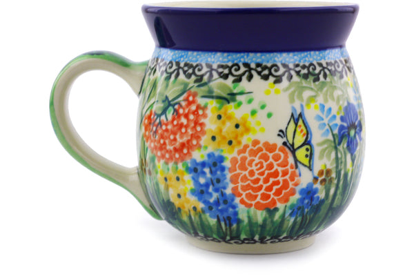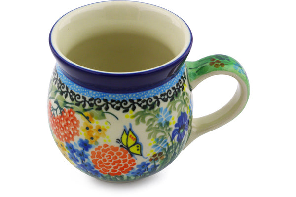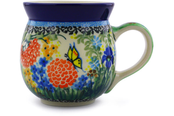 This Butterfly Garden 16 oz Bubble Mug was handmade and hand decorated in Boleslawiec, Poland by skilled artisans according to old traditional methods. This is a Polish pottery Signature Unikat, which means that it has been hand painted with both sponges and brushes and it is signed by the artist who painted it. Unikat pieces are the most intricate works of art. Larger Unikat items take hours of very careful work to finish. This Polish stoneware is microwave, dishwasher, freezer, and oven safe up to 480°F. It does not contain lead or cadmium. It is part of the Butterfly Garden Collection.
