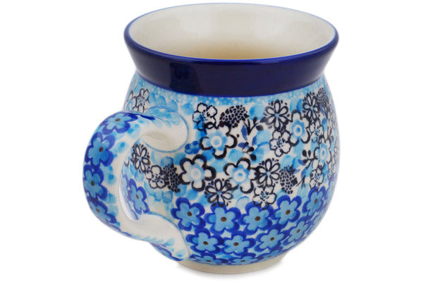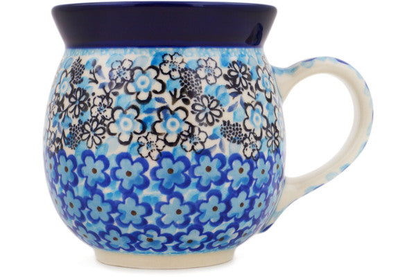 This Out Of Blue 16 oz Bubble Mug was handmade and hand decorated in Boleslawiec, Poland by skilled artisans according to old traditional methods. This is a Polish pottery Signature Unikat, which means that it has been hand painted with both sponges and brushes and it is signed by the artist who painted it. Unikat pieces are the most intricate works of art. Larger Unikat items take hours of very careful work to finish. This Polish stoneware is microwave, dishwasher, freezer, and oven safe up to 480°F. It does not contain lead or cadmium. It is part of the Out Of Blue Collection.