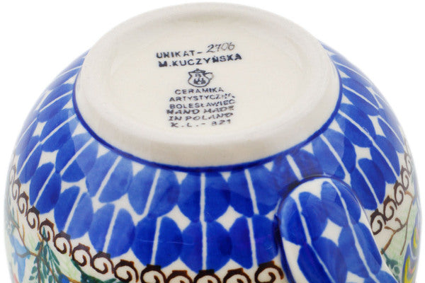 This Summer Rooster 16 oz Bubble Mug was handmade and hand decorated in Boleslawiec, Poland by skilled artisans according to old traditional methods. This is a Polish pottery Signature Unikat, which means that it has been hand painted with both sponges and brushes and it is signed by the artist who painted it. Unikat pieces are the most intricate works of art. Larger Unikat items take hours of very careful work to finish. This Polish stoneware is microwave, dishwasher, freezer, and oven safe up to 480°F. It does not contain lead or cadmium. It is part of the Summer Rooster Collection.