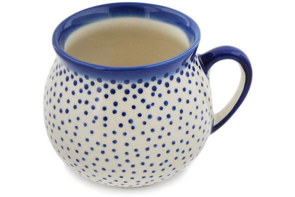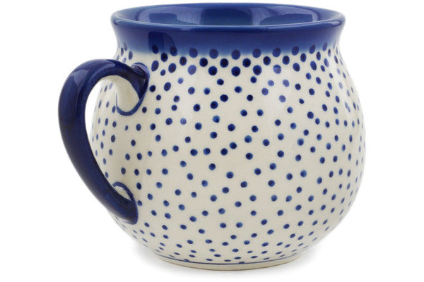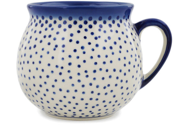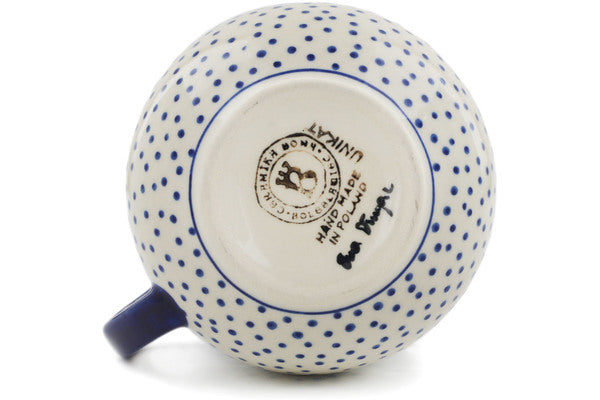 This Rain Of Dots 20 oz Bubble Mug was handmade and hand decorated in Boleslawiec, Poland by skilled artisans according to old traditional methods. This is a Polish pottery Signature Unikat, which means that it has been hand painted with both sponges and brushes and it is signed by the artist who painted it. Unikat pieces are the most intricate works of art. Larger Unikat items take hours of very careful work to finish. This Polish stoneware is microwave, dishwasher, freezer, and oven safe up to 480°F. It does not contain lead or cadmium. It is part of the Rain Of Dots Collection.