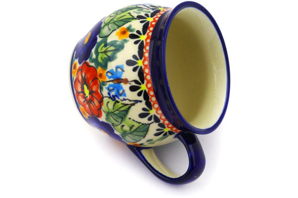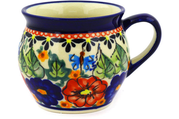 This Spring Splendor 5 oz Bubble Mug was handmade and hand decorated in Boleslawiec, Poland by skilled artisans according to old traditional methods. This is a Polish pottery Signature Unikat, which means that it has been hand painted with both sponges and brushes and it is signed by the artist who painted it. Unikat pieces are the most intricate works of art. Larger Unikat items take hours of very careful work to finish. This Polish stoneware is microwave, dishwasher, freezer, and oven safe up to 480°F. It does not contain lead or cadmium. It is part of the Spring Splendor Collection.