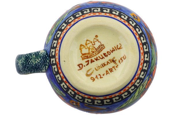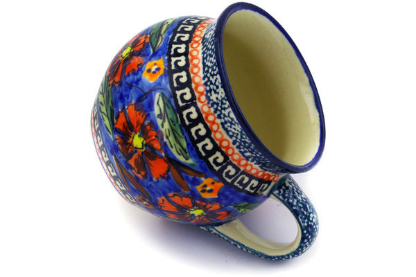 This Poppies 7 oz Bubble Mug was handmade and hand decorated in Boleslawiec, Poland by skilled artisans according to old traditional methods. This is a Polish pottery Signature Unikat, which means that it has been hand painted with both sponges and brushes and it is signed by the artist who painted it. Unikat pieces are the most intricate works of art. Larger Unikat items take hours of very careful work to finish. This Polish stoneware is microwave, dishwasher, freezer, and oven safe up to 480°F. It does not contain lead or cadmium. It is part of the Poppies Collection.