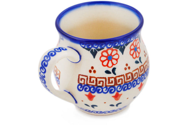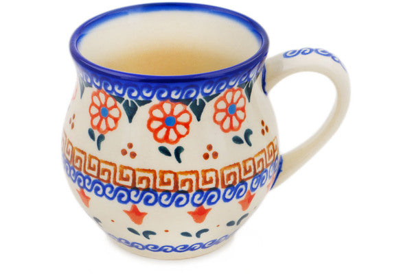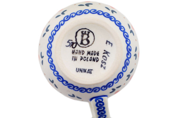 This Amarillo 8 oz Bubble Mug was handmade and hand decorated in Boleslawiec, Poland by skilled artisans according to old traditional methods. This Polish stoneware is microwave, dishwasher, freezer, and oven safe up to 480°F. It does not contain lead or cadmium. It is part of the Amarillo Collection.