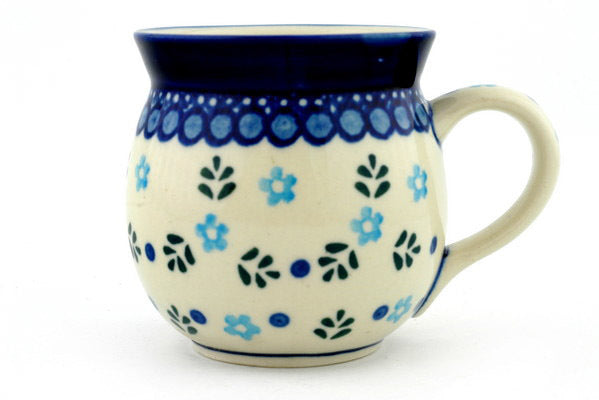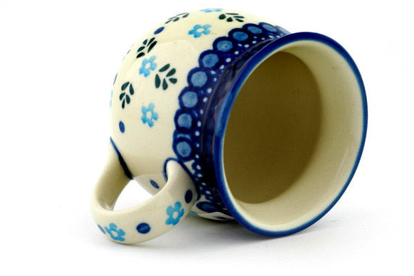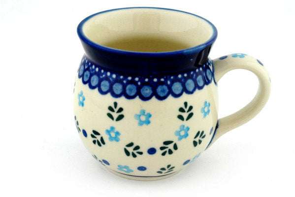This Blue Alysum Patch 8 oz Bubble Mug was handmade and hand decorated in Boleslawiec, Poland by skilled artisans according to old traditional methods. This Polish stoneware is microwave, dishwasher, freezer, and oven safe up to 480°F. It does not contain lead or cadmium. It is part of the Blue Alysum Patch Collection.