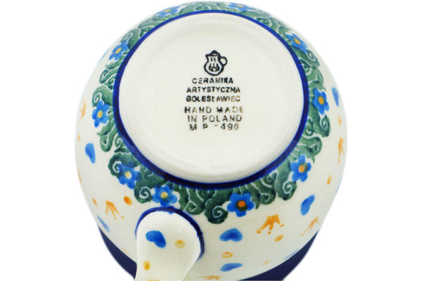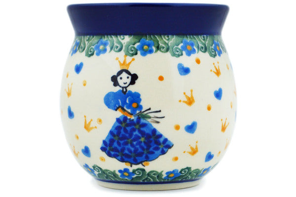 This Blue Castle Princess 8 oz Bubble Mug was handmade and hand decorated in Boleslawiec, Poland by skilled artisans according to old traditional methods. This Polish stoneware is microwave, dishwasher, freezer, and oven safe up to 480°F. It does not contain lead or cadmium. It is part of the Blue Castle Princess Collection.