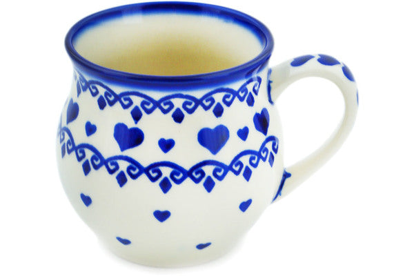 This Blue Valentine Hearts 8 oz Bubble Mug was handmade and hand decorated in Boleslawiec, Poland by skilled artisans according to old traditional methods. This Polish stoneware is microwave, dishwasher, freezer, and oven safe up to 480°F. It does not contain lead or cadmium. It is part of the Blue Valentine Hearts Collection.