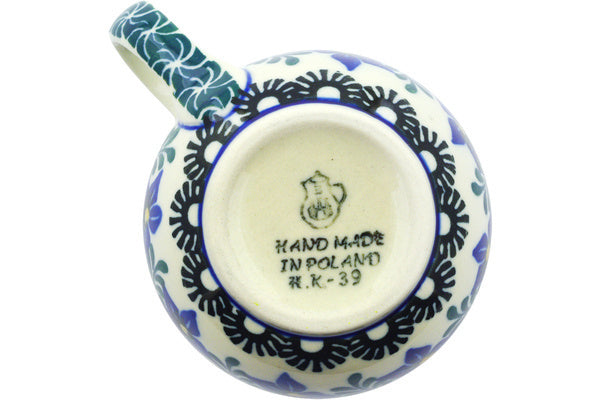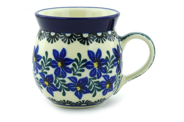 This Blue Violets 8 oz Bubble Mug was handmade and hand decorated in Boleslawiec, Poland by skilled artisans according to old traditional methods. This Polish stoneware is microwave, dishwasher, freezer, and oven safe up to 480°F. It does not contain lead or cadmium. It is part of the Blue Violets Collection.