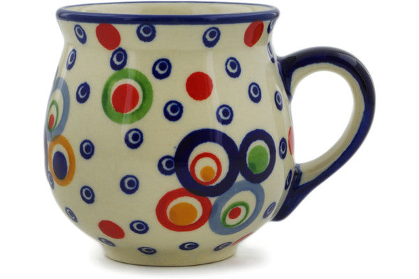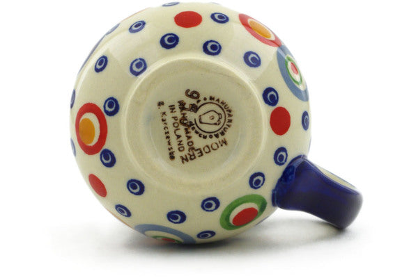 This Bubble Machine 8 oz Bubble Mug was handmade and hand decorated in Boleslawiec, Poland by skilled artisans according to old traditional methods. This is a Polish pottery Signature Unikat, which means that it has been hand painted with both sponges and brushes and it is signed by the artist who painted it. Unikat pieces are the most intricate works of art. Larger Unikat items take hours of very careful work to finish. This Polish stoneware is microwave, dishwasher, freezer, and oven safe up to 480°F. It does not contain lead or cadmium. It is part of the Bubble Machine Collection.