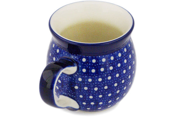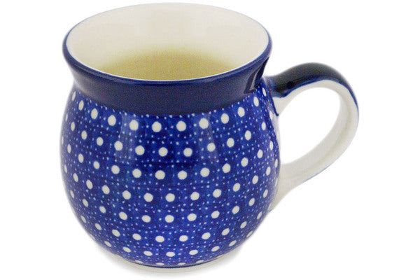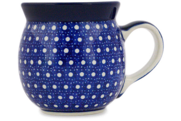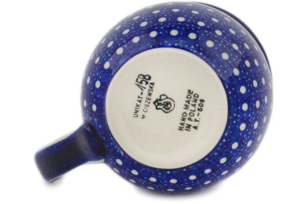 This White Polka Dot 8 oz Bubble Mug was handmade and hand decorated in Boleslawiec, Poland by skilled artisans according to old traditional methods. This is a Polish pottery Signature Unikat, which means that it has been hand painted with both sponges and brushes and it is signed by the artist who painted it. Unikat pieces are the most intricate works of art. Larger Unikat items take hours of very careful work to finish. This Polish stoneware is microwave, dishwasher, freezer, and oven safe up to 480°F. It does not contain lead or cadmium. It is part of the White Polka Dot Collection.