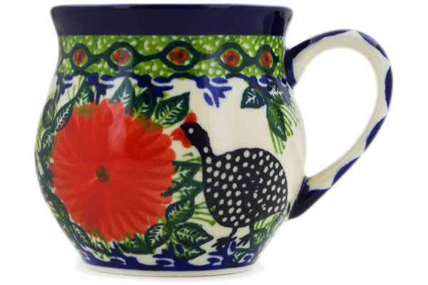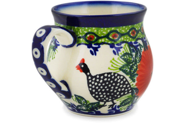 This Fowl In The Florals 8 oz Bubble Mug was handmade and hand decorated in Boleslawiec, Poland by skilled artisans according to old traditional methods. This is a Polish pottery Signature Unikat, which means that it has been hand painted with both sponges and brushes and it is signed by the artist who painted it. Unikat pieces are the most intricate works of art. Larger Unikat items take hours of very careful work to finish. This Polish stoneware is microwave, dishwasher, freezer, and oven safe up to 480°F. It does not contain lead or cadmium. It is part of the Fowl In The Florals Collection.