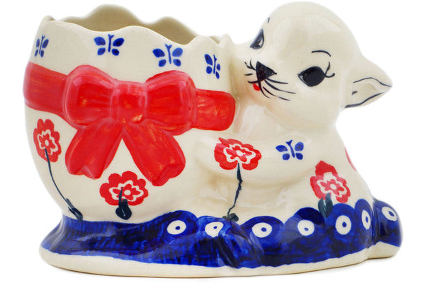 This Blue Eye Spring 6" Bunny Shaped Jar was handmade and hand decorated in Boleslawiec, Poland by skilled artisans according to old traditional methods. This Polish stoneware is microwave, dishwasher, freezer, and oven safe up to 480°F. It does not contain lead or cadmium. It is part of the Blue Eye Spring Collection.