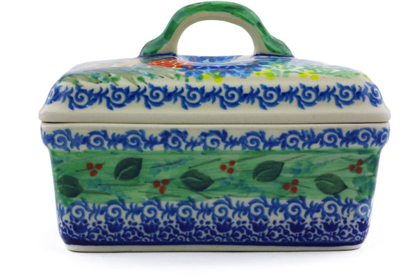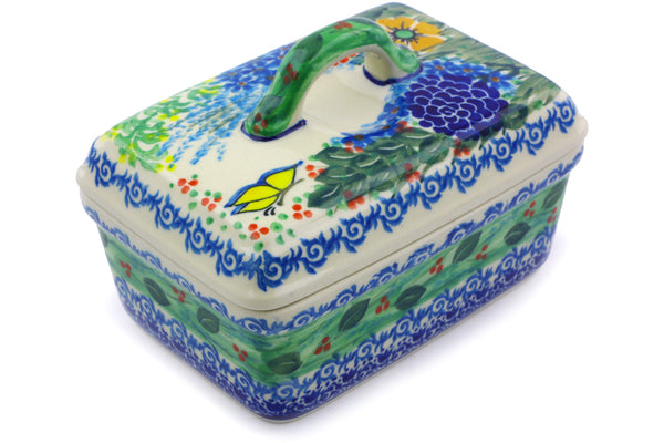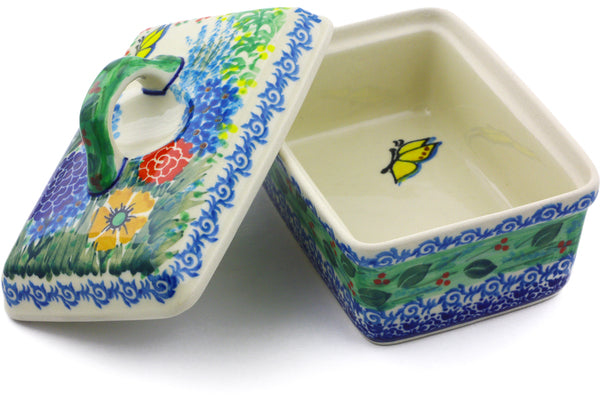 This Butterfly Garden 5" Butter box was handmade and hand decorated in Boleslawiec, Poland by skilled artisans according to old traditional methods. This is a Polish pottery Signature Unikat, which means that it has been hand painted with both sponges and brushes and it is signed by the artist who painted it. Unikat pieces are the most intricate works of art. Larger Unikat items take hours of very careful work to finish. This Polish stoneware is microwave, dishwasher, freezer, and oven safe up to 480°F. It does not contain lead or cadmium. It is part of the Butterfly Garden Collection.