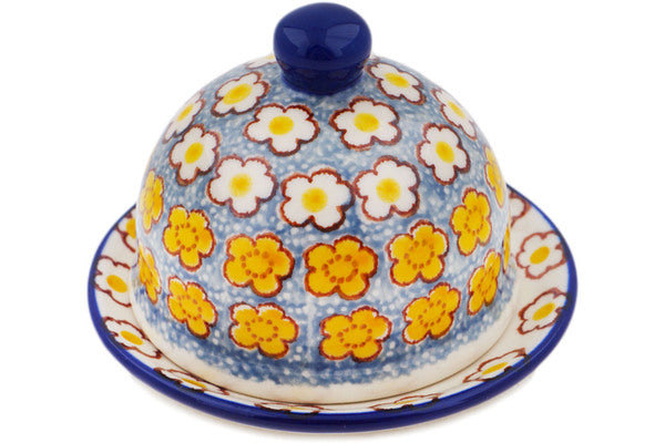 This Popcorn Daisies 4" Butter Dish was handmade and hand decorated in Boleslawiec, Poland by skilled artisans according to old traditional methods. This is a Polish pottery Signature Unikat, which means that it has been hand painted with both sponges and brushes and it is signed by the artist who painted it. Unikat pieces are the most intricate works of art. Larger Unikat items take hours of very careful work to finish. This Polish stoneware is microwave, dishwasher, freezer, and oven safe up to 480°F. It does not contain lead or cadmium. It is part of the Popcorn Daisies Collection.