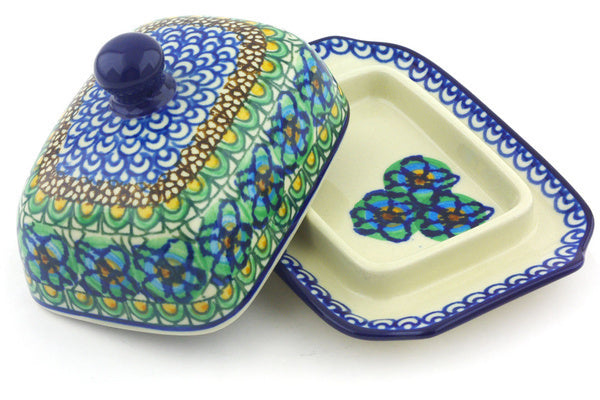 This Mardi Gras 6" Butter Dish was handmade and hand decorated in Boleslawiec, Poland by skilled artisans according to old traditional methods. This is a Polish pottery Signature Unikat, which means that it has been hand painted with both sponges and brushes and it is signed by the artist who painted it. Unikat pieces are the most intricate works of art. Larger Unikat items take hours of very careful work to finish. This Polish stoneware is microwave, dishwasher, freezer, and oven safe up to 480°F. It does not contain lead or cadmium. It is part of the Mardi Gras Collection.