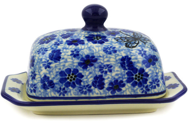 This Misty Dragonfly 6" Butter Dish was handmade and hand decorated in Boleslawiec, Poland by skilled artisans according to old traditional methods. This Polish stoneware is microwave, dishwasher, freezer, and oven safe up to 480°F. It does not contain lead or cadmium. It is part of the Misty Dragonfly Collection.