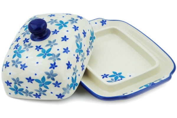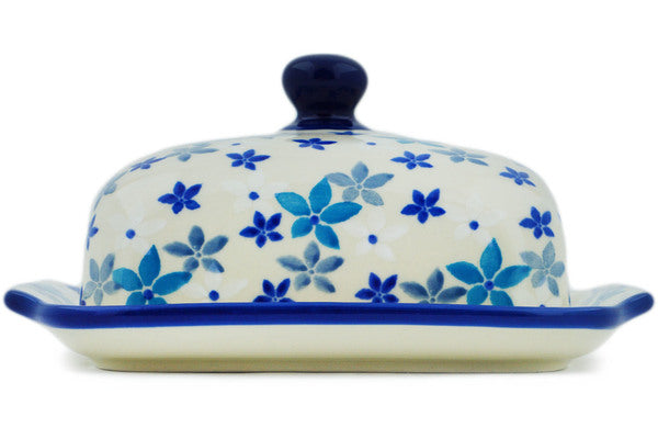 This Blossoms In The Frost 7" Butter Dish was handmade and hand decorated in Boleslawiec, Poland by skilled artisans according to old traditional methods. This Polish stoneware is microwave, dishwasher, freezer, and oven safe up to 480°F. It does not contain lead or cadmium. It is part of the Blossoms In The Frost Collection.