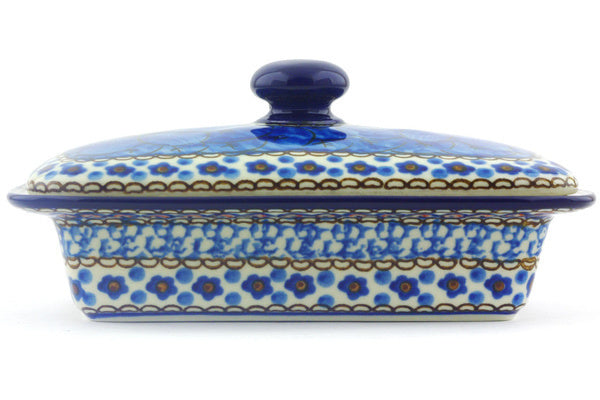 This Cobalt Poppies 7" Butter Dish was handmade and hand decorated in Boleslawiec, Poland by skilled artisans according to old traditional methods. This is a Polish pottery Signature Unikat, which means that it has been hand painted with both sponges and brushes and it is signed by the artist who painted it. Unikat pieces are the most intricate works of art. Larger Unikat items take hours of very careful work to finish. This Polish stoneware is microwave, dishwasher, freezer, and oven safe up to 480°F. It does not contain lead or cadmium. It is part of the Cobalt Poppies Collection.
