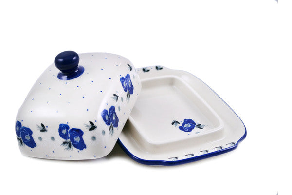 This Daisy Crown 7" Butter Dish was handmade and hand decorated in Boleslawiec, Poland by skilled artisans according to old traditional methods. This Polish stoneware is microwave, dishwasher, freezer, and oven safe up to 480°F. It does not contain lead or cadmium. It is part of the Daisy Crown Collection.