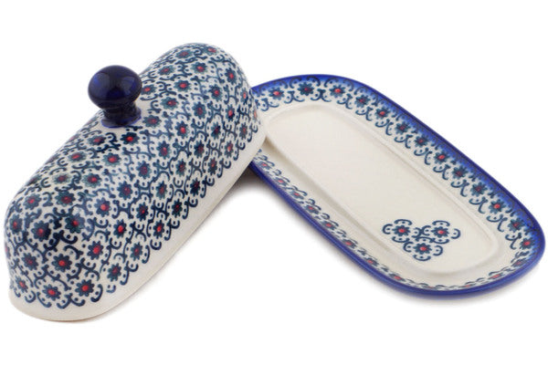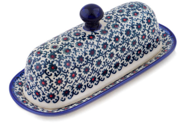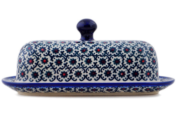 This Field Of Black Daisies 7" Butter Dish was handmade and hand decorated in Boleslawiec, Poland by skilled artisans according to old traditional methods. This Polish stoneware is microwave, dishwasher, freezer, and oven safe up to 480°F. It does not contain lead or cadmium. It is part of the Field Of Black Daisies Collection.