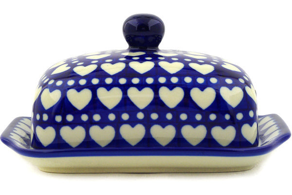 This Heart To Heart 7" Butter Dish was handmade and hand decorated in Boleslawiec, Poland by skilled artisans according to old traditional methods. This Polish stoneware is microwave, dishwasher, freezer, and oven safe up to 480°F. It does not contain lead or cadmium. It is part of the Heart To Heart Collection.