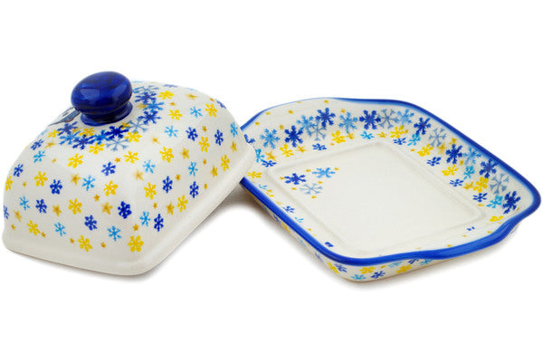 This Delightful Snowfall 8" Butter Dish was handmade and hand decorated in Boleslawiec, Poland by skilled artisans according to old traditional methods. This Polish stoneware is microwave, dishwasher, freezer, and oven safe up to 480°F. It does not contain lead or cadmium. It is part of the Delightful Snowfall Collection.