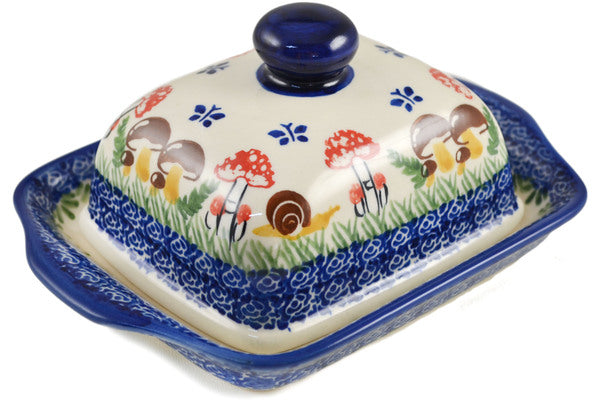 This Gardens In Poland 8" Butter Dish was handmade and hand decorated in Boleslawiec, Poland by skilled artisans according to old traditional methods. This Polish stoneware is microwave, dishwasher, freezer, and oven safe up to 480°F. It does not contain lead or cadmium. It is part of the Gardens In Poland Collection.