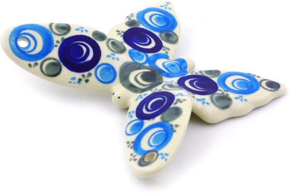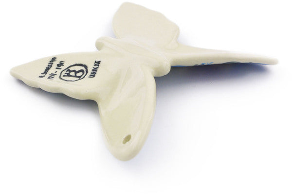 This Blue Peacock Eye 4" Butterfly Figurine was handmade and hand decorated in Boleslawiec, Poland by skilled artisans according to old traditional methods. This Polish stoneware is microwave, dishwasher, freezer, and oven safe up to 480°F. It does not contain lead or cadmium. It is part of the Blue Peacock Eye Collection.