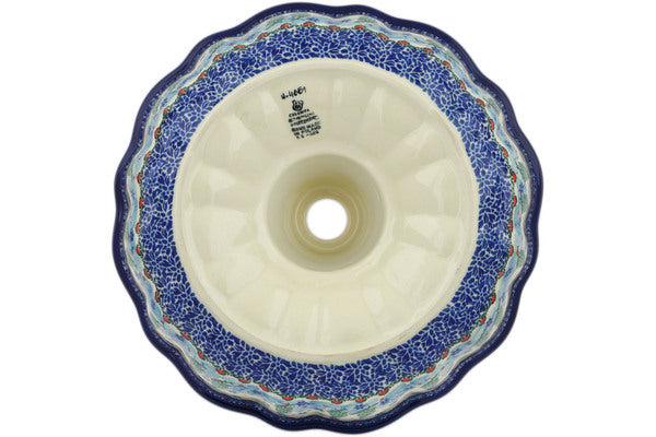 This Dancing Snowman 10" Cake Mould was handmade and hand decorated in Boleslawiec, Poland by skilled artisans according to old traditional methods. This is a Polish pottery Signature Unikat, which means that it has been hand painted with both sponges and brushes and it is signed by the artist who painted it. Unikat pieces are the most intricate works of art. Larger Unikat items take hours of very careful work to finish. This Polish stoneware is microwave, dishwasher, freezer, and oven safe up to 480°F. It does not contain lead or cadmium. It is part of the Dancing Snowman Collection.