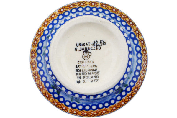 This Blue Poppy Circle 3" Candle Holder was handmade and hand decorated in Boleslawiec, Poland by skilled artisans according to old traditional methods. This is a Polish pottery Signature Unikat, which means that it has been hand painted with both sponges and brushes and it is signed by the artist who painted it. Unikat pieces are the most intricate works of art. Larger Unikat items take hours of very careful work to finish. This Polish stoneware is microwave, dishwasher, freezer, and oven safe up to 480°F. It does not contain lead or cadmium. It is part of the Blue Poppy Circle Collection.
