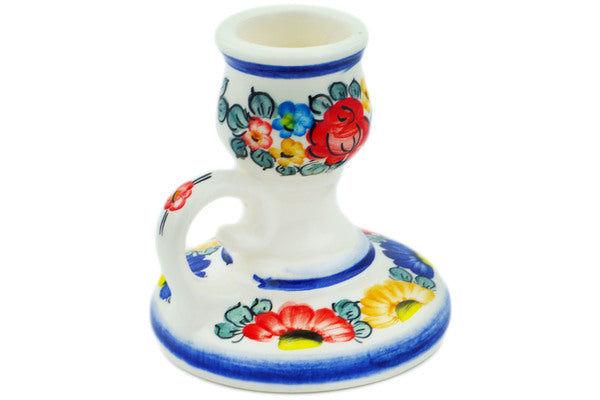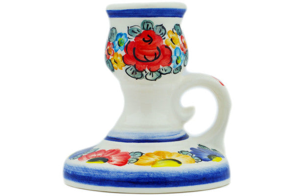 This Little Flower Patch 4" Candle Holder was handmade and hand decorated in Boleslawiec, Poland by skilled artisans according to old traditional methods. This Polish stoneware is microwave, dishwasher, freezer, and oven safe up to 480°F. It does not contain lead or cadmium. It is part of the Little Flower Patch Collection.
