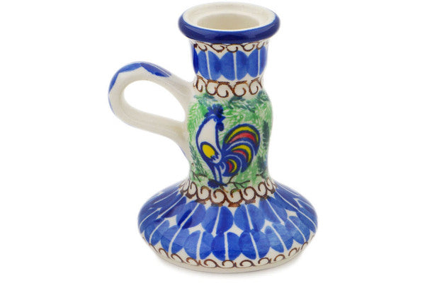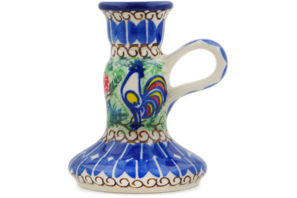 This Summer Rooster 4" Candle Holder was handmade and hand decorated in Boleslawiec, Poland by skilled artisans according to old traditional methods. This is a Polish pottery Signature Unikat, which means that it has been hand painted with both sponges and brushes and it is signed by the artist who painted it. Unikat pieces are the most intricate works of art. Larger Unikat items take hours of very careful work to finish. This Polish stoneware is microwave, dishwasher, freezer, and oven safe up to 480°F. It does not contain lead or cadmium. It is part of the Summer Rooster Collection.