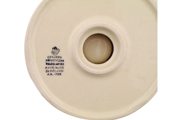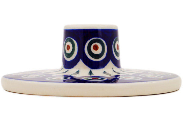 This Peacock Leaves 5" Candle Holder was handmade and hand decorated in Boleslawiec, Poland by skilled artisans according to old traditional methods. This Polish stoneware is microwave, dishwasher, freezer, and oven safe up to 480°F. It does not contain lead or cadmium. It is part of the Peacock Leaves Collection.