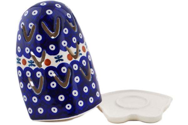 This Mosquito 6" Candle Holder was handmade and hand decorated in Boleslawiec, Poland by skilled artisans according to old traditional methods. This Polish stoneware is microwave, dishwasher, freezer, and oven safe up to 480°F. It does not contain lead or cadmium. It is part of the Mosquito Collection.