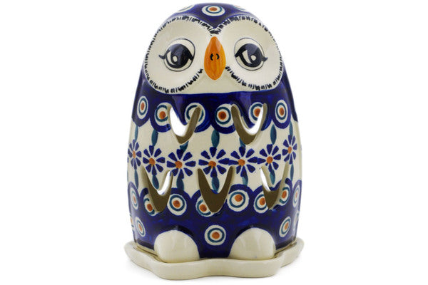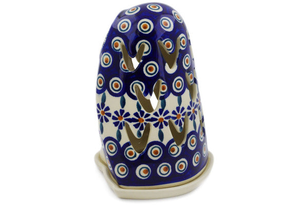 This Peacock 6" Candle Holder was handmade and hand decorated in Boleslawiec, Poland by skilled artisans according to old traditional methods. This Polish stoneware is microwave, dishwasher, freezer, and oven safe up to 480°F. It does not contain lead or cadmium. It is part of the Peacock Collection.