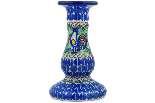 This Summer Rooster 6" Candle Holder was handmade and hand decorated in Boleslawiec, Poland by skilled artisans according to old traditional methods. This is a Polish pottery Signature Unikat, which means that it has been hand painted with both sponges and brushes and it is signed by the artist who painted it. Unikat pieces are the most intricate works of art. Larger Unikat items take hours of very careful work to finish. This Polish stoneware is microwave, dishwasher, freezer, and oven safe up to 480°F. It does not contain lead or cadmium. It is part of the Summer Rooster Collection.